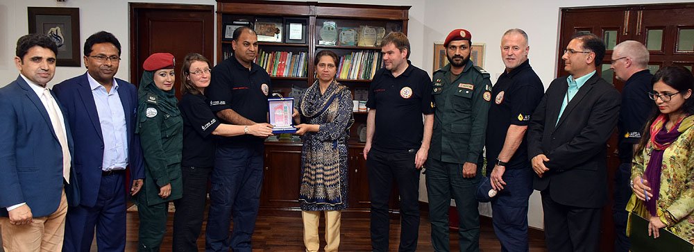 Rescue Services Punjab Team presented souvenir to Prof. Dr. Bushra Mirza