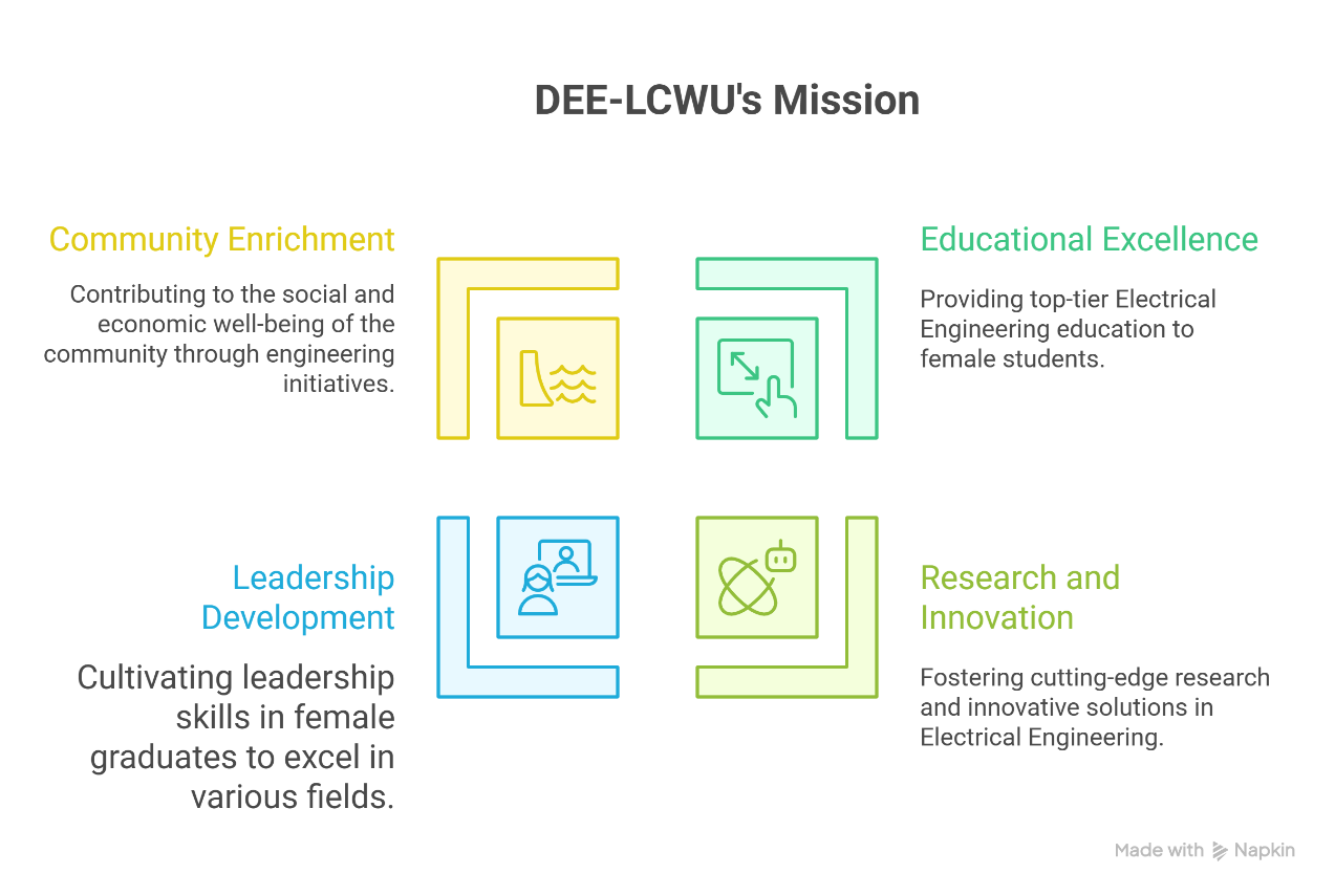 To be one of the leading programs of Electrical Engineering education, research and innovation that produces quality female graduates who are capable of taking leadership positions in broader aspects of Electrical Engineering and can exhibit excellence in academia, industry, technology, economics and social enrichment of community at large.