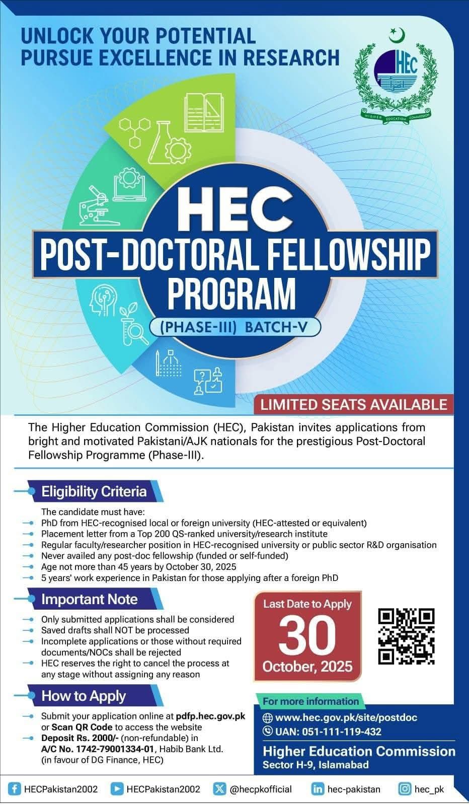 The International Research Support Initiative Program: Higher Education Commission of Pakistan offers a six month research fellowship abroad to those students who are enrolled in full time PhD programs in Pakistan. This is providing exposure to the PhD scholars which will enhance the quality of research that they will be conducting in Pakistan. This opportunity also provides to develop linkages between Pakistani and foreign institutions. Click for details