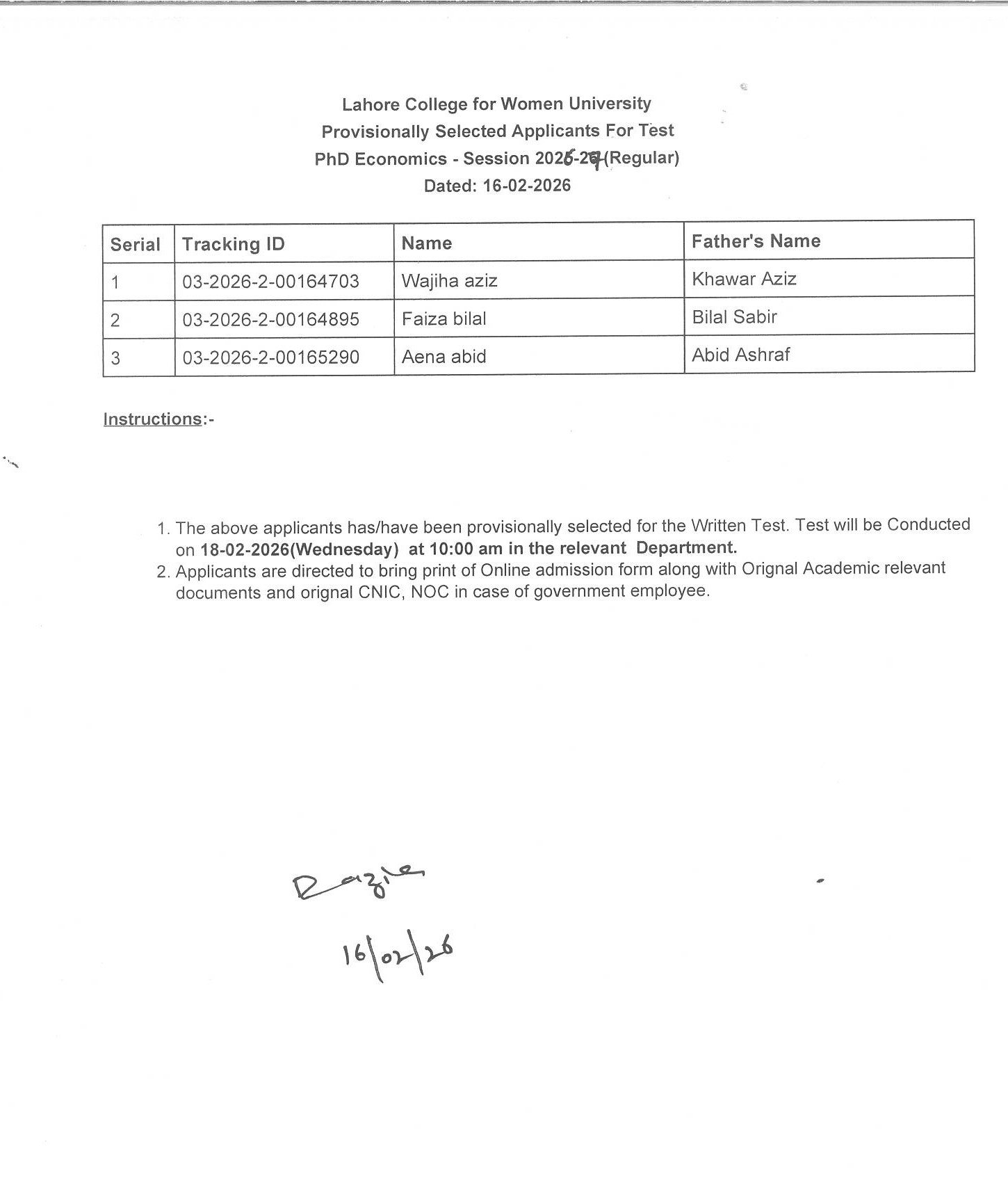 PhD- List of Eligible Candidates for Written Test