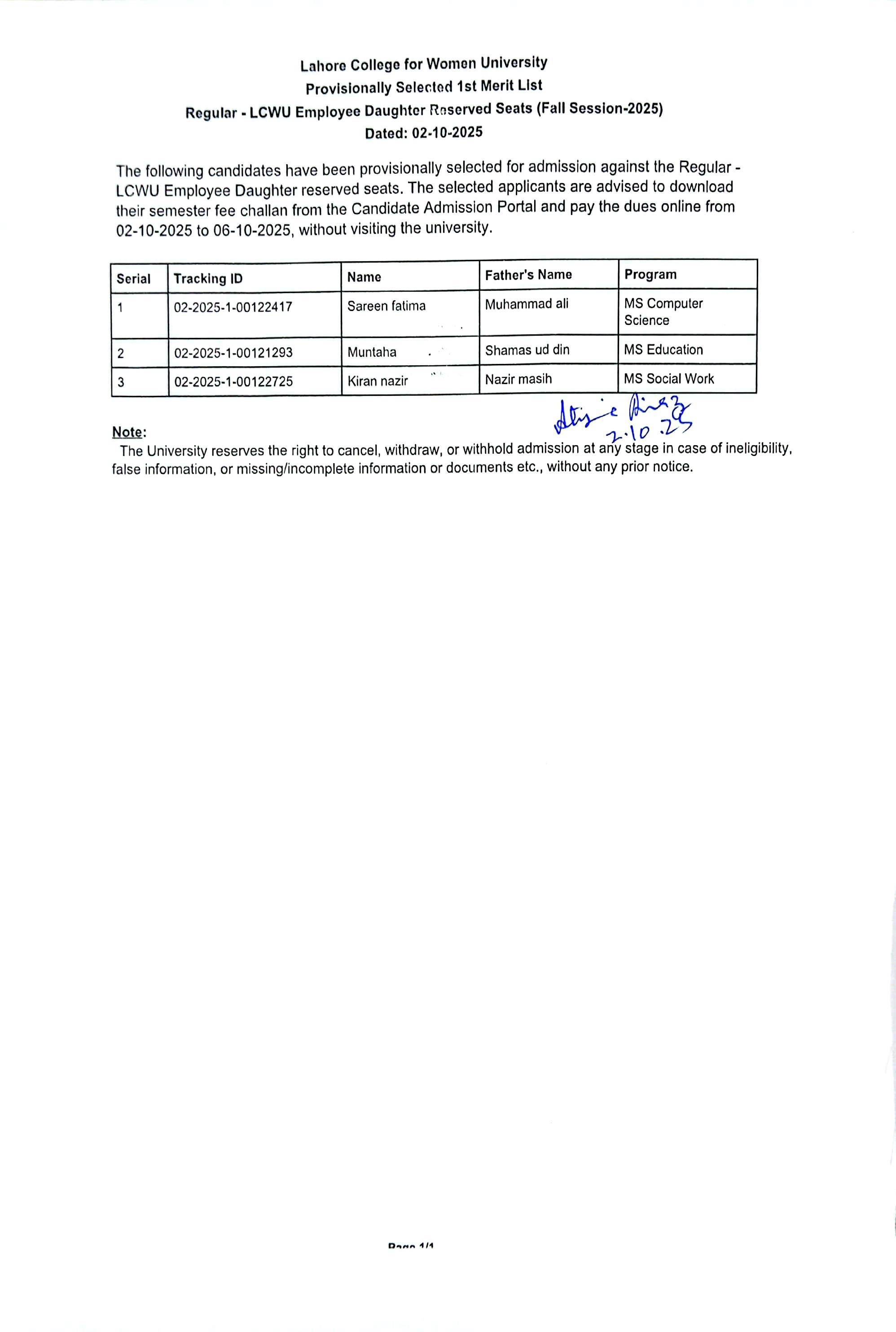 Please CLICK HERE to download the List of Reserved Seats (Sindh) (Regular)