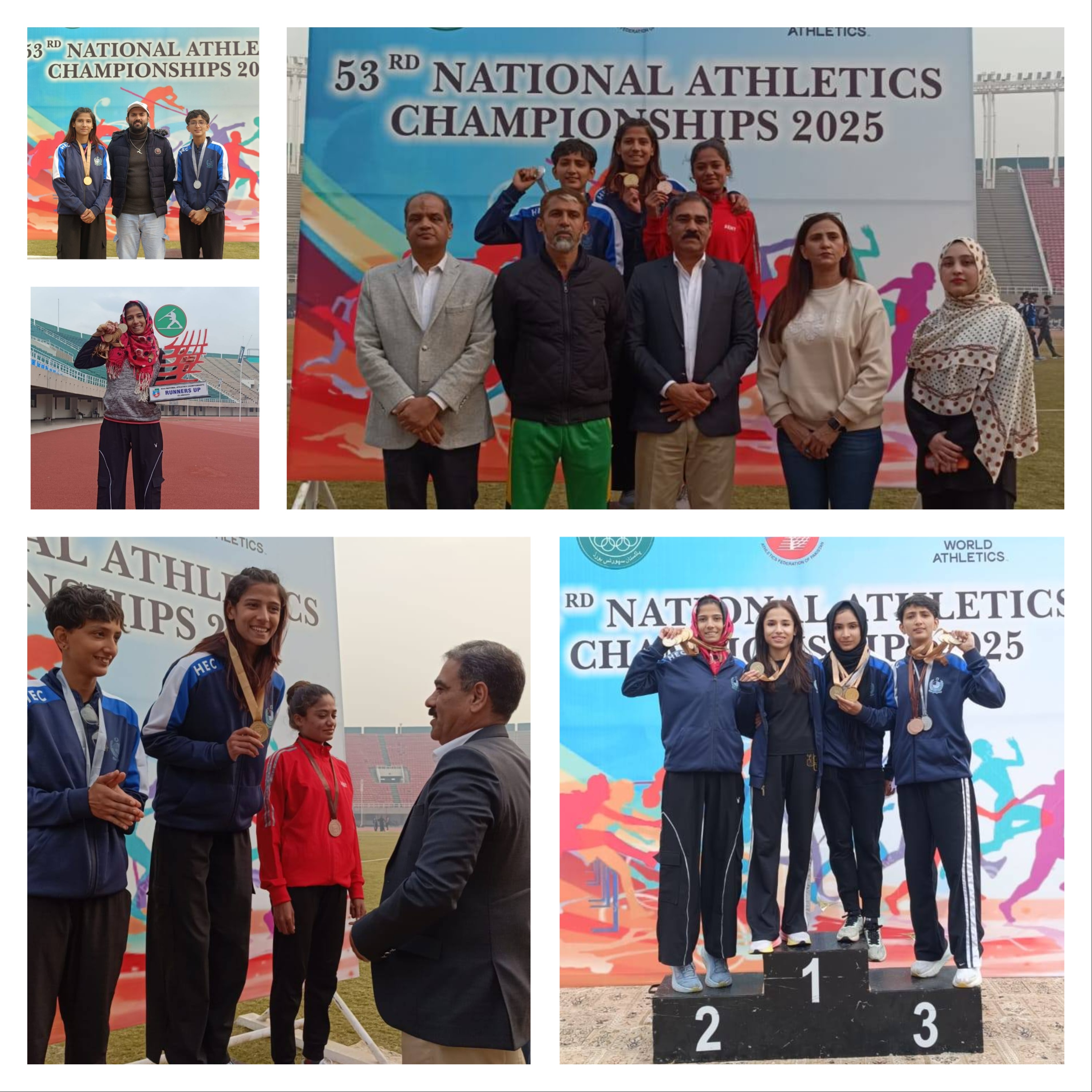 Our talented students, representing HEC, delivered an outstanding performance at the 53rd National Athletics Championship 2025 (28–31 Dec, Pakistan Sports Complex, Islamabad), win 9 Gold Medals and securing the Overall Runner-Up position