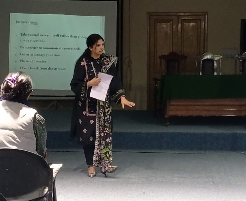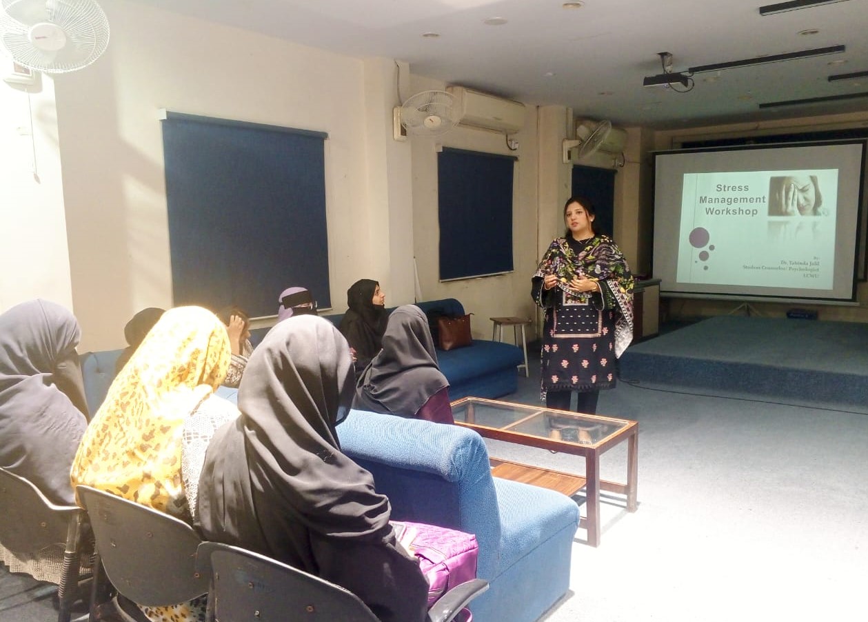 Workshop on “Stress management” was conducted by Student Counselor/ Psychologist Dr. Tabinda Jalil, on 20th Nov, 2025. Faculty and students from department of Arabic attended the workshop. Agenda of the workshop was to educate participants about stress, its impact on physical and mental health, and difference between good and bad stress. Participants were asked to identify and write their stressors and their positive and negative ways of managing stress.