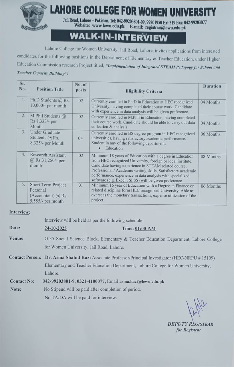 Walk-In-Interview (Department of Elementary & Teacher Education)