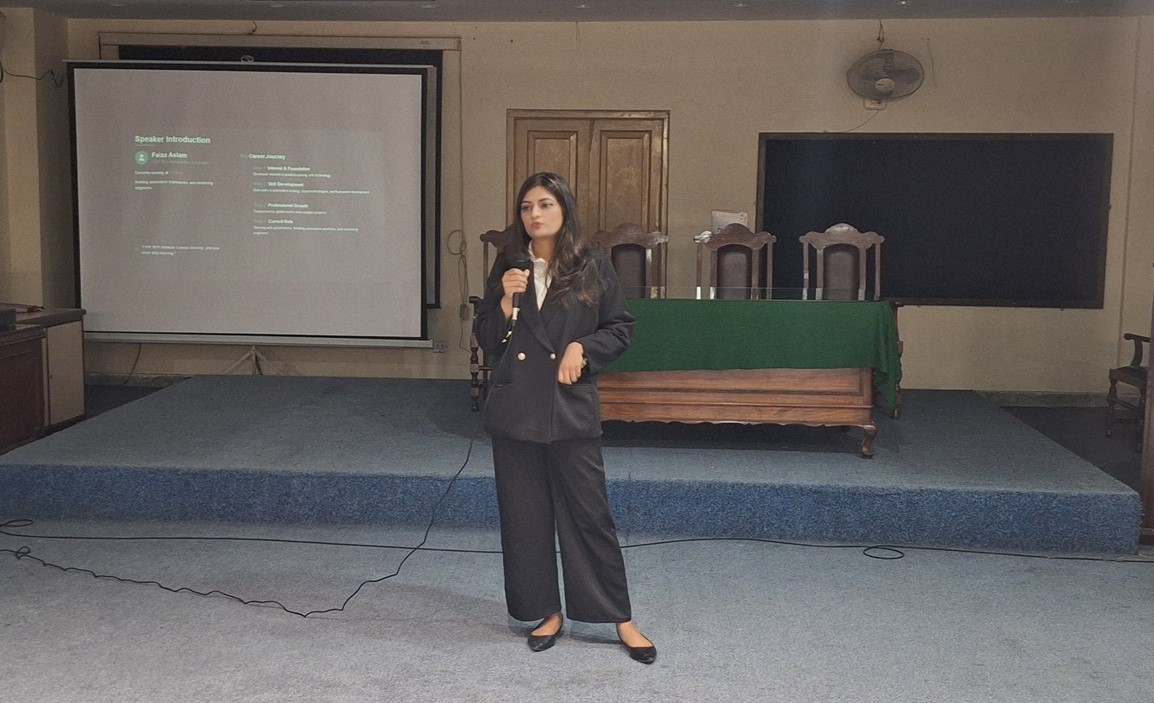 November 26, 2025: CCJP organized an engaging Career Talk featuring Ms. Faiza Aslam, a Staff Automation Engineer at 10Pearls. She shared her journey in the IT field and spoke honestly about what it takes to succeed today—strong basics, curiosity, and continuous learning.Faiza introduced students to the world of automation engineering, explaining how testing, scripting, and modern tools shape today’s software industry. She also gave practical advice on building skills, choosing the right career path, and preparing for internships and job opportunities.