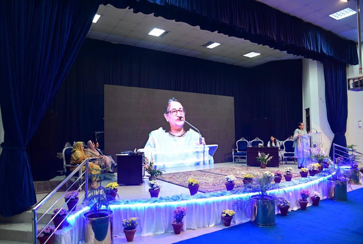 In her keynote address, Prof. Dr. Uzma Quraishi commended the college for effectively aligning academic research, creative disciplines and socially responsive learning with the broader academic vision of LCWU. She acknowledged the Principal Prof. Dr. Nighat Naheed Zafar and commended the institution’s commitment to quality education, innovation and meaningful community engagement. Dr. Quraishi emphasized the importance of research excellence, creative innovation and stronger academic linkages across LCWU and its affiliated colleges. Her presence, address and inauguration of the exhibition served as a distinguished highlight of the event.