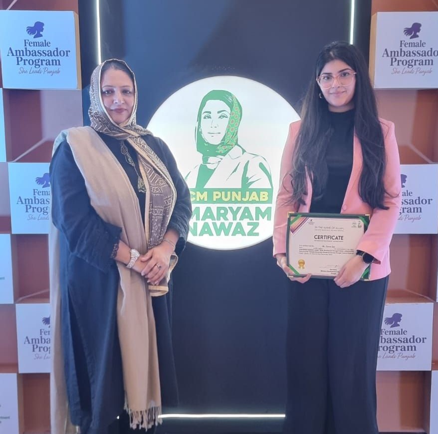 Proud to acknowledge the Government of Punjab for providing this platform of representation through Lahore College for Women University, appointing Ms. Zarwa Ijaz as Female Ambassador and Dr. Uzma Ashiq Khan as Focal Person, under a collaborative initiative with the "Women Development Department."
