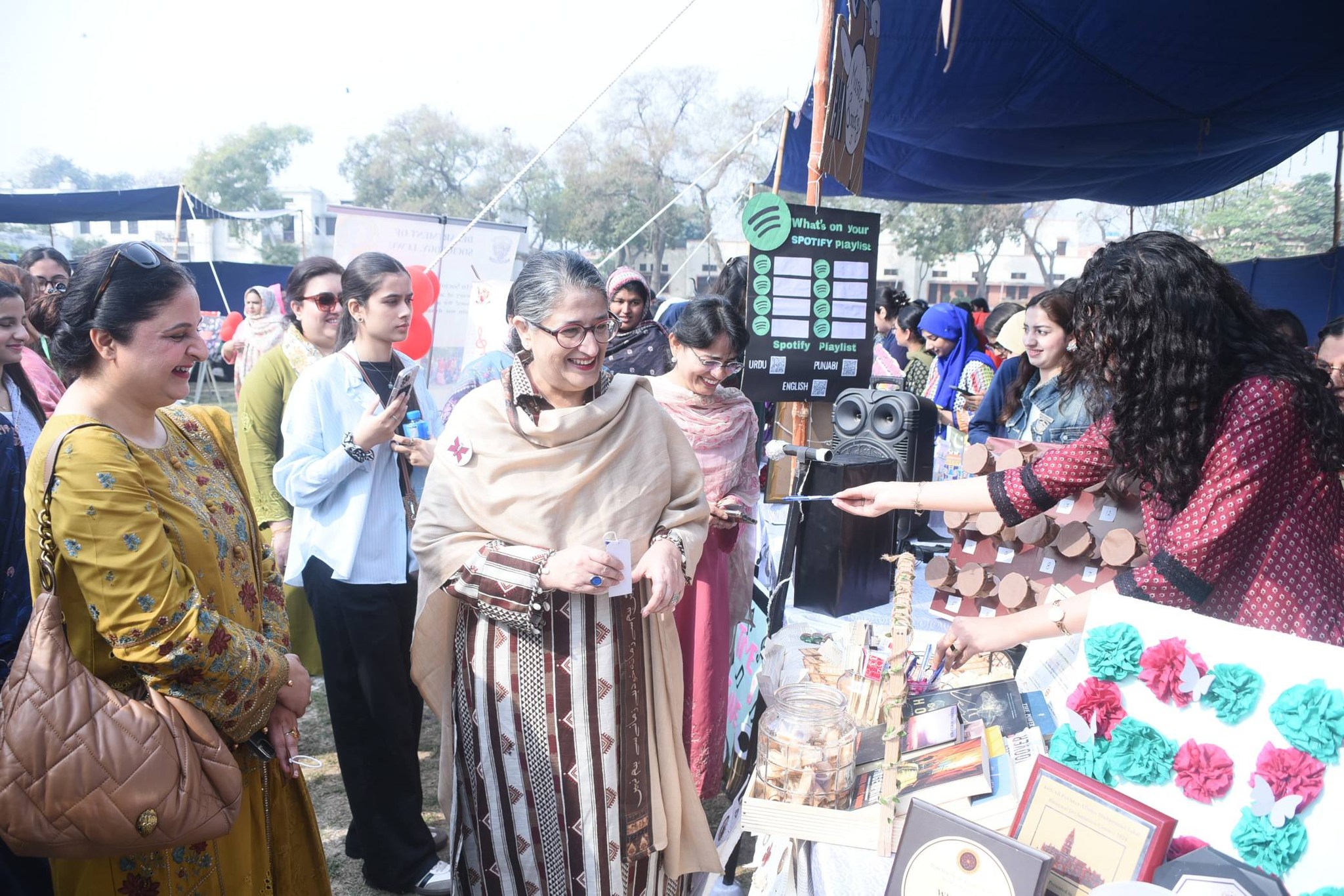 Prof. Dr. Uzma Quraishi, Vice Chancellor of the university, accompanied by the Director of Student Affairs, officials from the Directorate of Student Affairs, and faculty members, visited the stalls organized by various student societies. They commended the diverse talents on display and appreciated the students’ enthusiasm in advocating meaningful social and cultural causes.