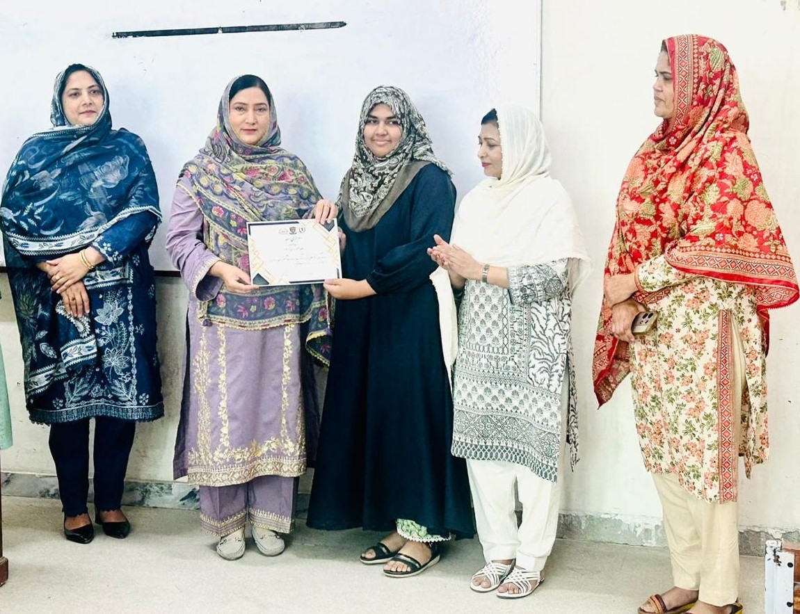 کاعنوان:"انتہا پسندی اور نسلِ نو کا کردار " اور افسانے کا عنوان: "تقلید "تھا۔اوّل، دوم اور سوم پوزیشن حاصل کرنے والی طالبات کو تعریفی اسناد سےنوازا گیا۔ منصنفین کے فرائض ڈاکٹر نائلہ انجم اور ڈاکٹر شبنم نیاز نے سر انجام دیے۔ مضمون نویسی میں اوّل پوزیشن بہیج مصطفیٰ، دوم طیبہ ارشد اور سوم پوزیشن نور فاطمہ نے حاصل کی۔ جب کہ افسانہ نویسی کے مقابلے میں ماہاشہباز اوّل، رُوبا دوم اور عائشہ علی شیر سوّم پوزیشن کی حق دار قرار پائیں۔