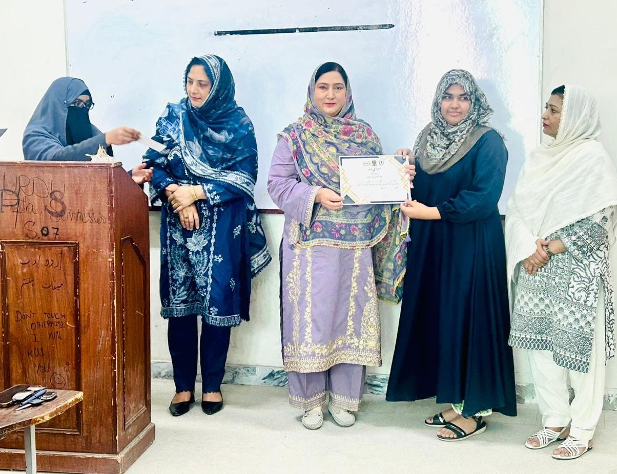 اردو مضمون نویسی اور افسانہ سوسائٹی(شعبہ اردو) کے زیراہتمام اردو مضمون نویسی اورافسانہ کامقابلہ منعقد کرایا گیا۔ مقابلےکے لیےمضمون