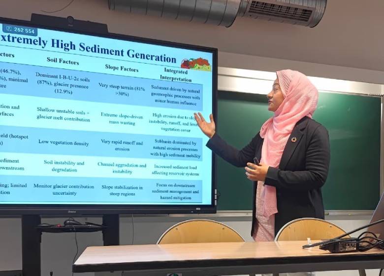 She presented a DPSIR-based framework integrated with SWAT-driven simulations for sediment management in the upstream Tarbela Reservoir (Upper Indus Basin) for key stakeholders including the Tarbela Dam project and WAPDA, highlighting geospatial and modelling approaches under changing climatic conditions.