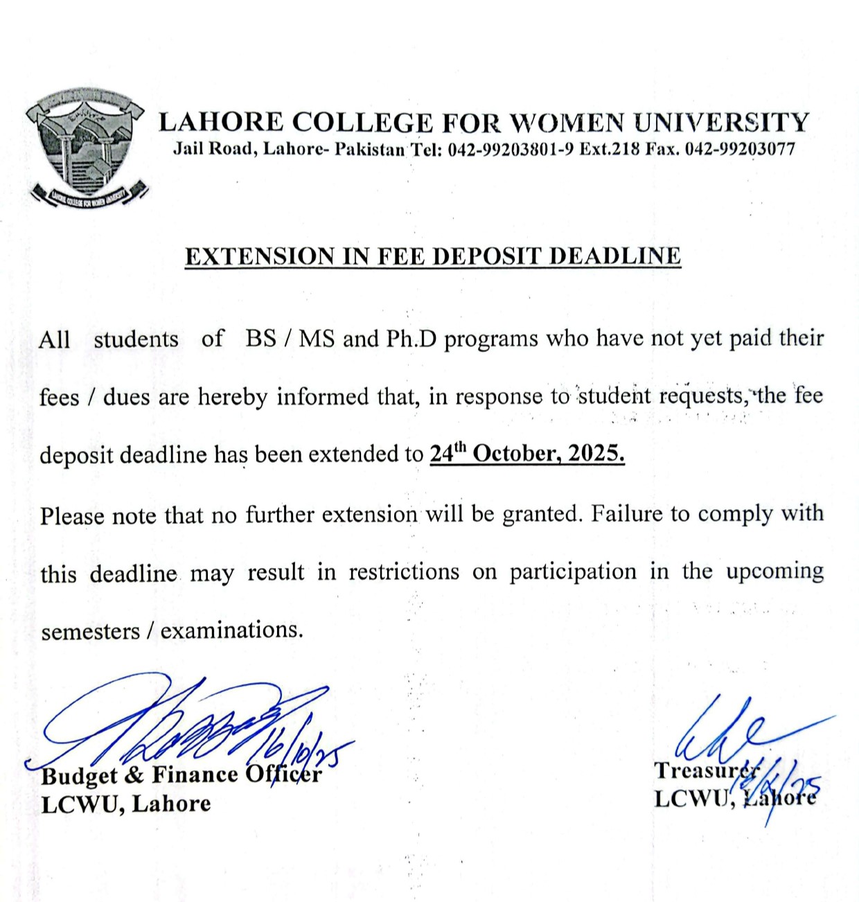- Please CLICK HERE to download the BS, MS, PhD Fee Notice (Fall 2025) (3rd Semester)