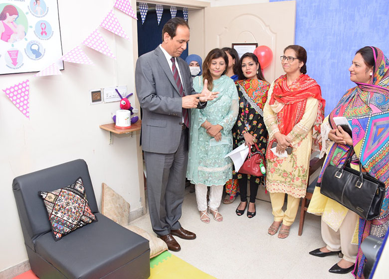 At the opening ceremony, Worthy Vice Chancellor LCWU, Prof. Dr. Bushra Mirza, Prof. Dr. Muhammad Afzal Dean of Arts and Social sciences and Chief Guest Dr. Sohail Saqlain Member (Health and Nutrition and population) Planning and development Board Govt. of Punjab inaugurates the breast-feeding corner in Day Care Center LCWU, furnished by Department of Gender Studies and Department of Sociology. After that, The Worthy Vice Chancellor LCWU and Honourable guests Dr. Sohail Saqlain Member (Health and Nutrition and population) Planning and development Board Govt. of Punjab, Mr. Syed Umar (M&E Specialist) visited stalls of brochures made by student of Department of Gender Studies and Sociology.