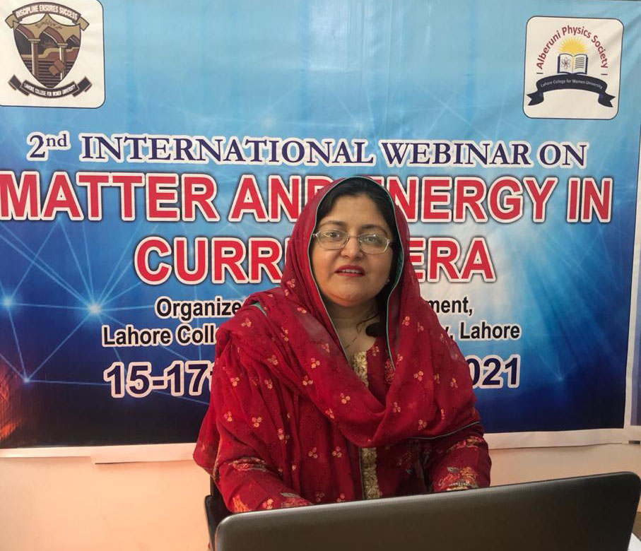 Physics Department of Lahore College for Women University organized the 2nd 3-day International webinar on "Matter and Energy in Current Era" (MECE, 2021) from 15th to 17th Feb, 2021 under the leadership of Prof. Dr. Zohra Nazir Kayani (Chairperson of Physics dept, LCWU).