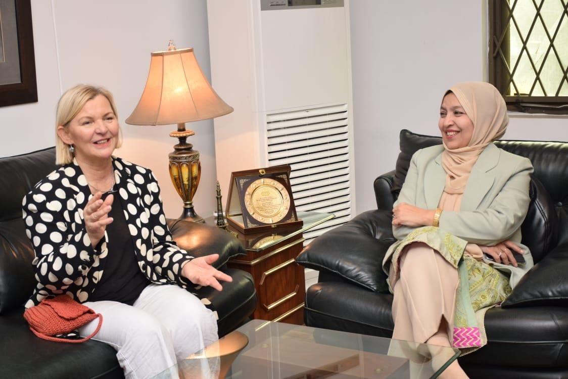 In a vibrant exchange of ideas and creativity, Vice Chancellor LCWU Prof. Dr. Shagufta Naz and Ms. Lynne Hugill, a Principal Lecturer (International) at Teesside University emphasized the importance of cross-cultural collaboration in today's interconnected world. Mr. Syed Abidi, Regional Director Teesside University (Pakistan & MENA Region), Prof. Dr. Muhammad Afzal, Dean Faculty of Arts & Social Sciences LCWU, Ms. Ayesha Sadiqa from Graphic Design and Ms. Farhana Naz from Interior Design Department engaged in an interactive session aimed at fostering international collaboration and exploring exciting opportunities in the world of art and design.