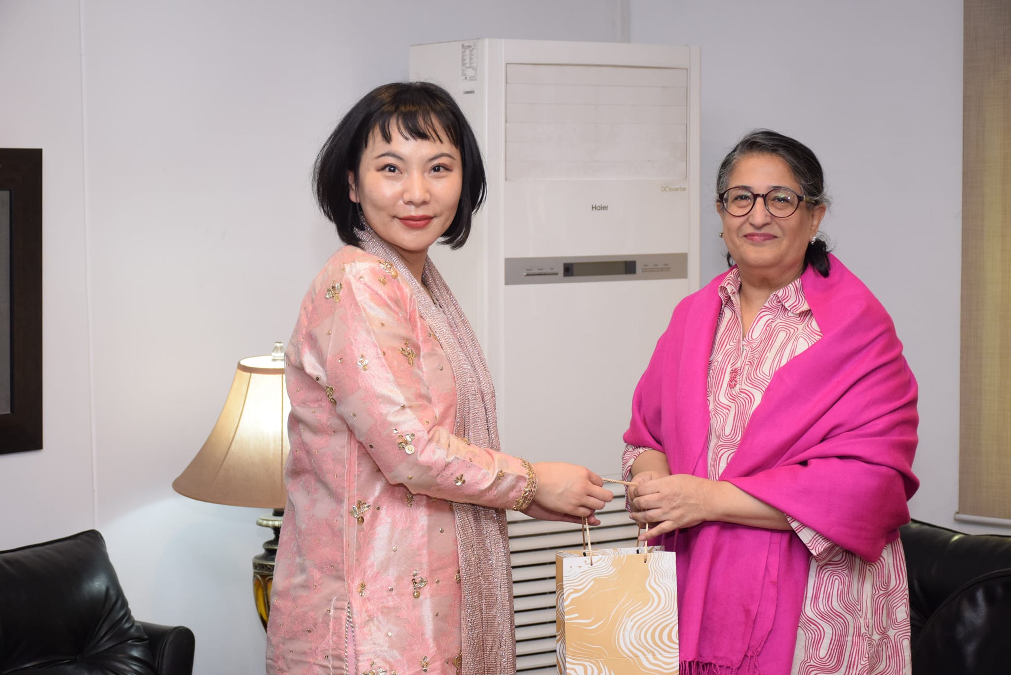 The guests, Dr Tian, Dr Ijaz Ahmed Tatla (Associate Professor at the University of Education), and Dr Naima Qureshi (Assistant Professor at the University of Education) along with the focal person, Dr. Fakhra Aziz and the senior members of the faculty of Education, Faculty of Arts and Social Sciences, faculty of Islamic and Oriental Studies, met with the Vice Chancellor of LCWU, Prof. Dr. Uzma Quraishi to discuss further possibilities of collaboration and partnership for research and exchange programs.