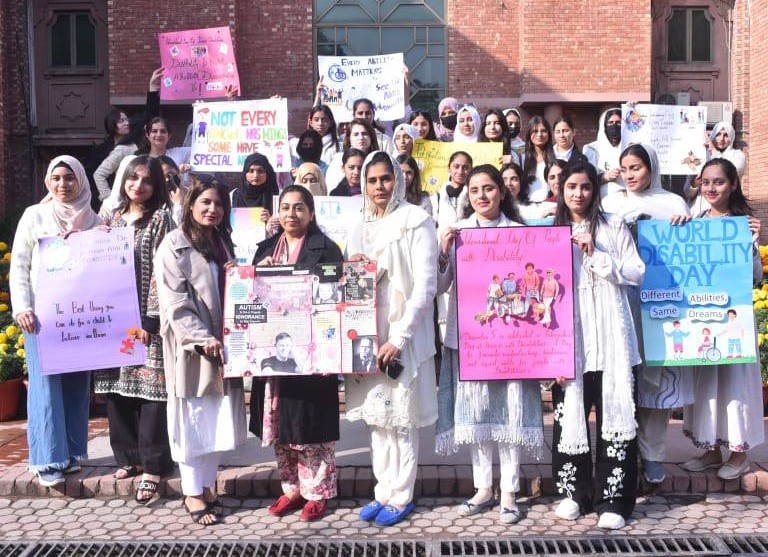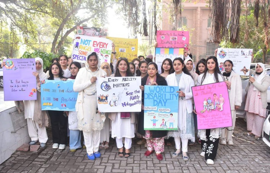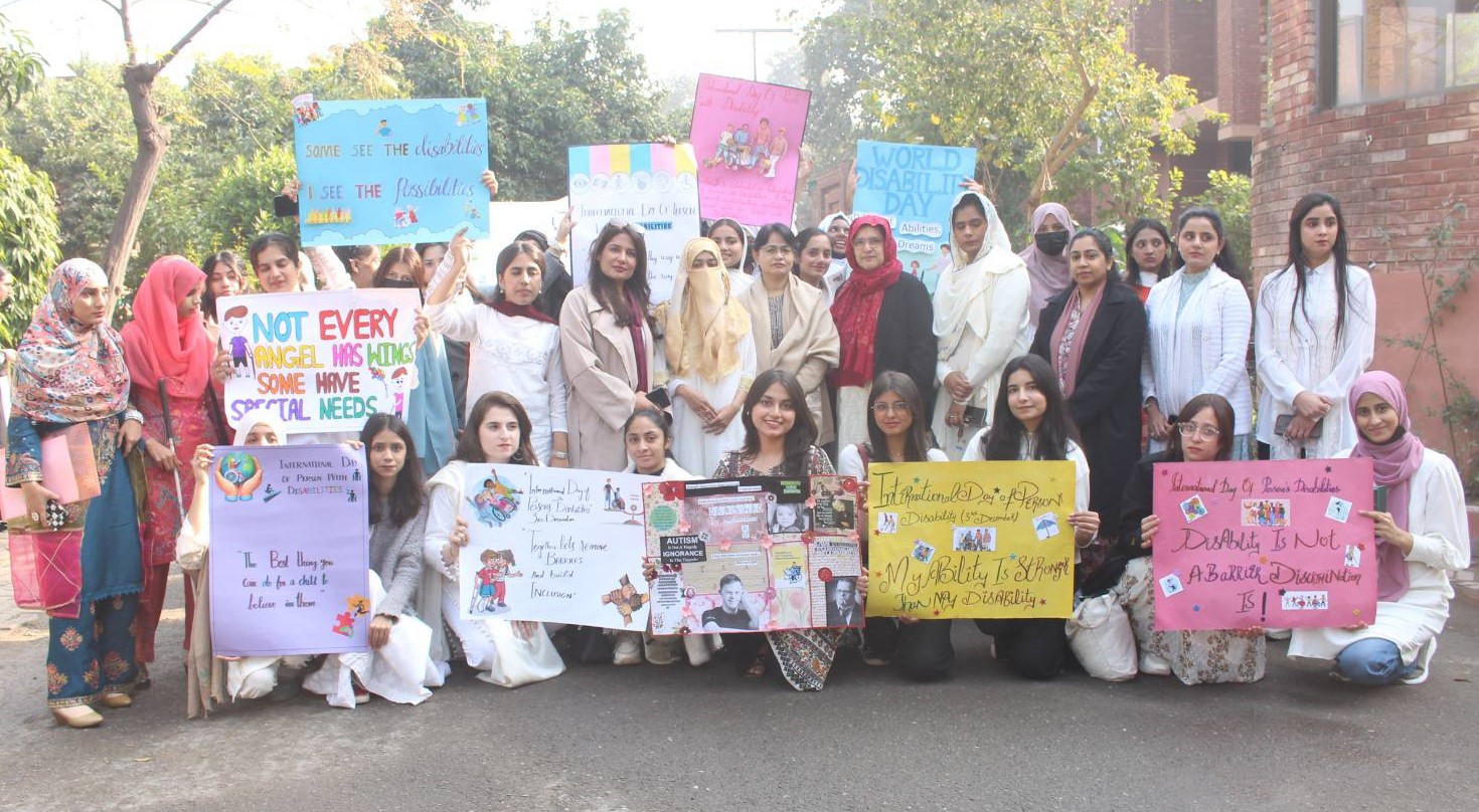 The Department of Special Education, LCWU, organized an Awareness Walk to highlight the rights, challenges, and needs of people with special needs. This walk was organized to mark International Disability Day. Faculty members and students participated to show solidarity and to promote understanding, respect, and meaningful inclusion for individuals with disabilities. The walk aimed to spread awareness about creating supportive spaces and ensuring equal opportunities for all.