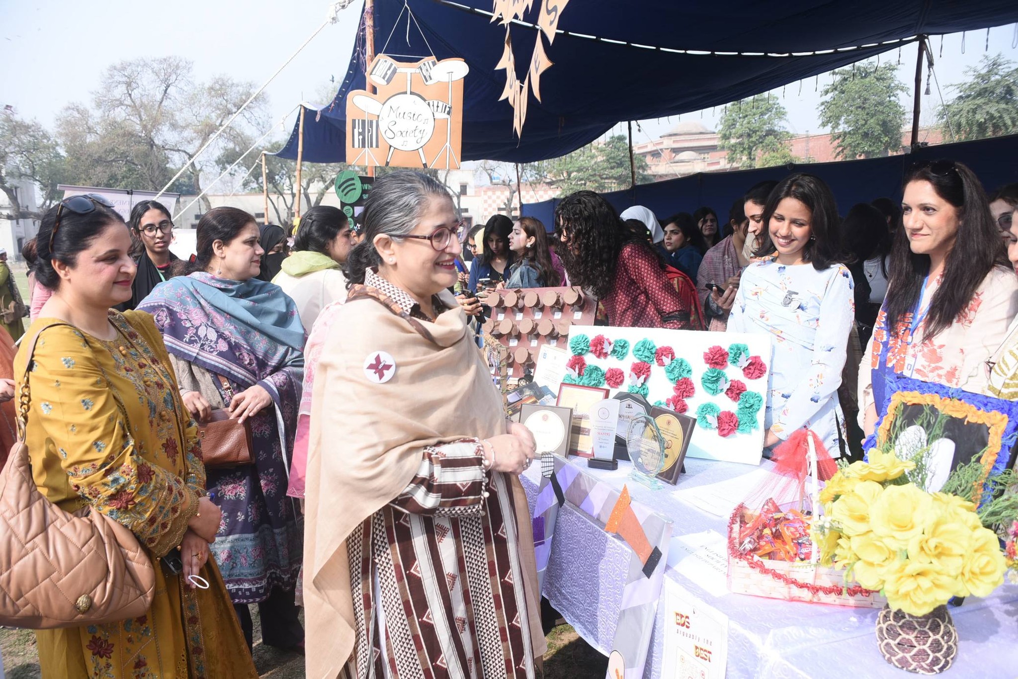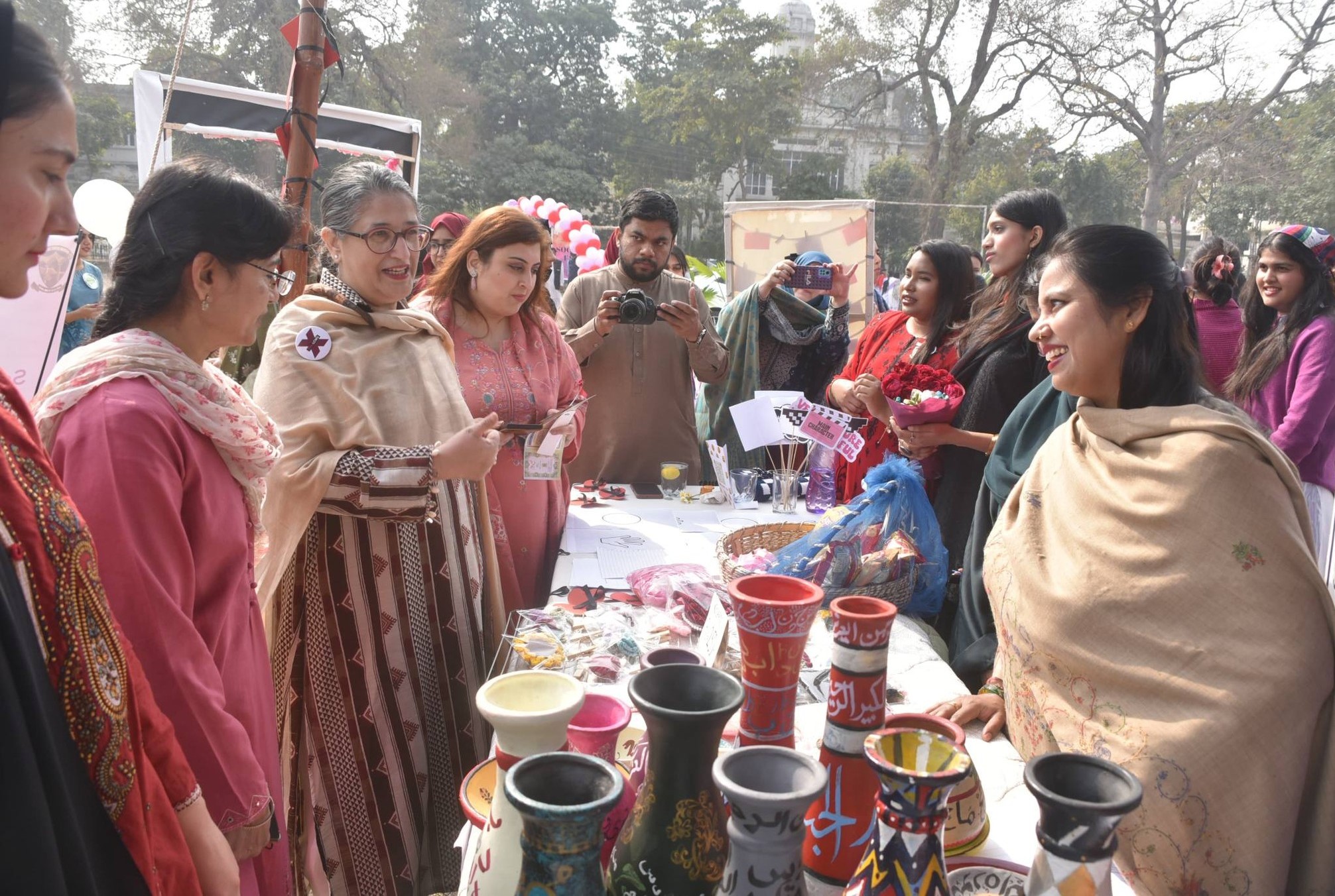 Prof. Dr. Uzma Quraishi, Vice Chancellor of the university, accompanied by the Director of Student Affairs, officials from the Directorate of Student Affairs, and faculty members, visited the stalls organized by various student societies. They commended the diverse talents on display and appreciated the students’ enthusiasm in advocating meaningful social and cultural causes.