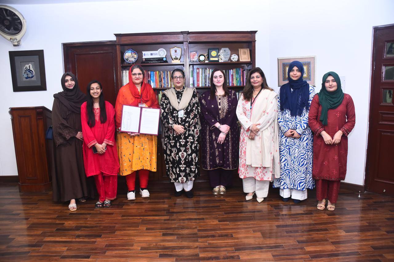 Lahore College for Women University (LCWU) proudly announces a prestigious international research achievement secured under the supervision of Dr. Saima Eman and the mentorship of Prof. Dr. Amina Muazzam, Chairperson, Department of Applied Psychology and Director WILL, under the visionary guidance of Prof. Dr. Uzma Quraishi, Vice Chancellor LCWU, who met the research team and appreciated the students for this outstanding accomplishment.